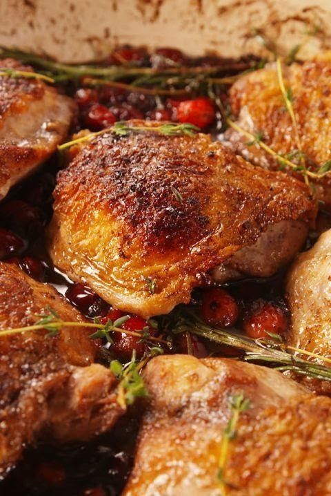 Return chicken to skillet and scatter herbs all around. Simmer until the liquid begins to thicken and the cranberries start to soften, 5 to 10 minutes.